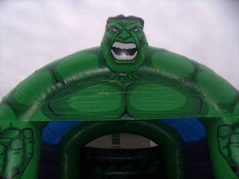 A fantastic visual effect of the mighty incredible hulk, the boys will just love this theme, a very popular size that will fit most gardens, and with its 6ft high walls makes it suitable for adults to also have some fun. The castle comes with inflation fan, extension cable, anchor stakes or sand bags, a safety mat and fitted shower.