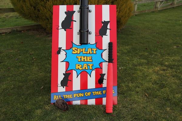 Great all time favourite splat the rat game, you simply put the soft toy rat down the pipe and you have to hit the rat with the pole as it comes out of the pipe, if you do it's a hit and you get a prize, also a great way of raising money at School fetes, or fun days Etc.