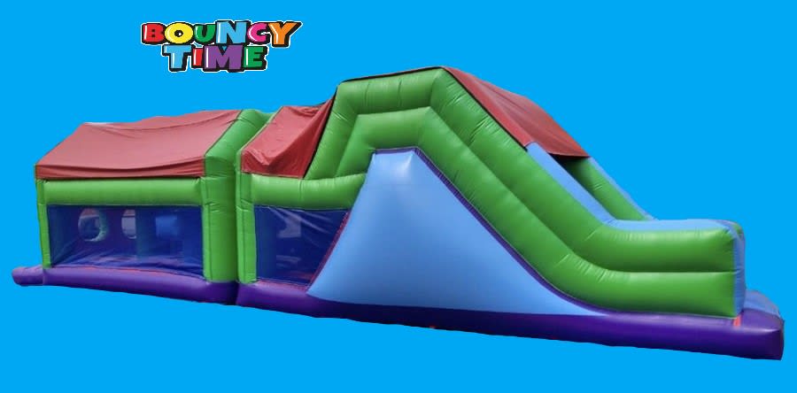 This assault course is a great way to entertain children and is best suited to kids 12 years and under who have some energy to burn off. Why not play against each other head to head to see who is the fastest through the course. Perfect for School Fetes and Corporate Fun days. Also has a fitted shower cover and fitted netting to either side. It comes with 2 inflation fans, extension cables, anchor stakes or sand bags and safety mats.