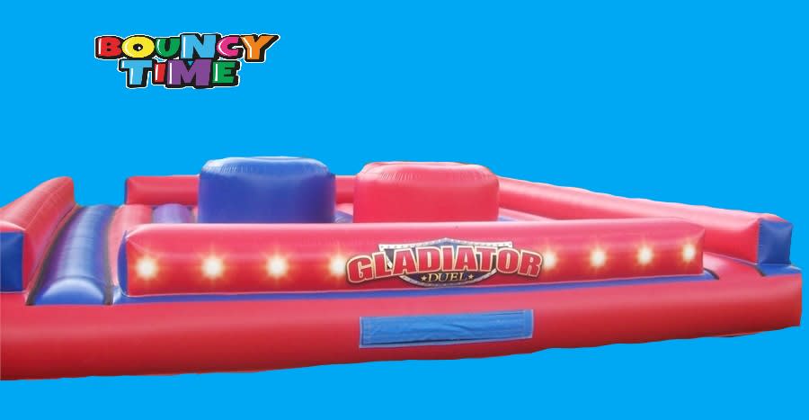 A fantastic gladiator duel. Yes you need strength and a lot of stamina, can you knock your opponent off the podium. Gladiators combat on a 20ft x 20ft inflatable bed for extra safety in mind. Comes with adult and junior head safety protectors and two long padded foam batons, sizes for both adult or kids from 7 years of age, great fun the gladiators and the audience. Ideal for school fetes, fun days etc. The inflatable flat bed comes with 2 x 2.O.Hp inflation fans, extension cables, anchor stakes or sand bags