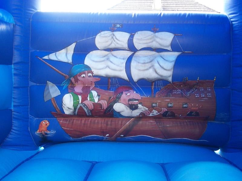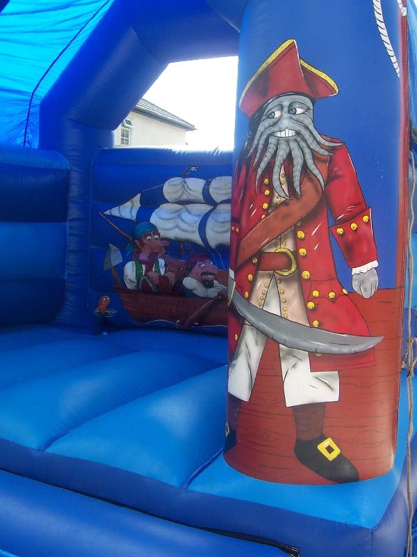 A Pirates of the Caribbean Theme that will be a hit with all the kids, they will just love it. suitable for children up to 10 years of age, and will hold 5 to 7 kids at any one time depending on age and height. the bouncy castle comes with inflation fan, extension cable, anchor stakes or sand bags, safety mat and fitted shower cover.