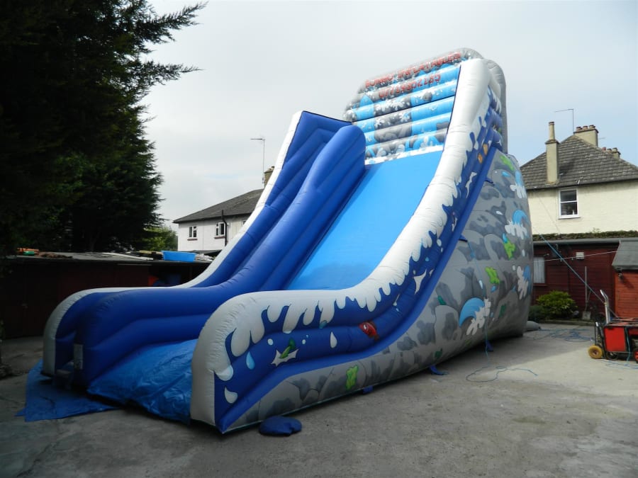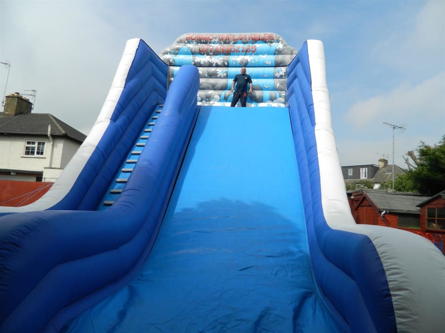 This Giant Slide requires a clear access into the venue and will not fit through a standard doorway or a standard side gate unless its 4ft wide. please remember when working out your measurements for the unit to fit into the venue to allow an extra 6ft at the back for the tube and blower. an extra 2ft for safety mats to the front, and 3ft to either side for clearance